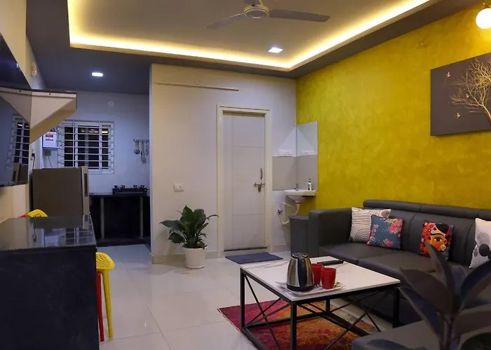 冰箱 和炉子都是可在这里找到的。 驾车33分钟就可以到拉吉夫-甘地国际机场,公寓距离Anjaya Nagar公交车站750米。